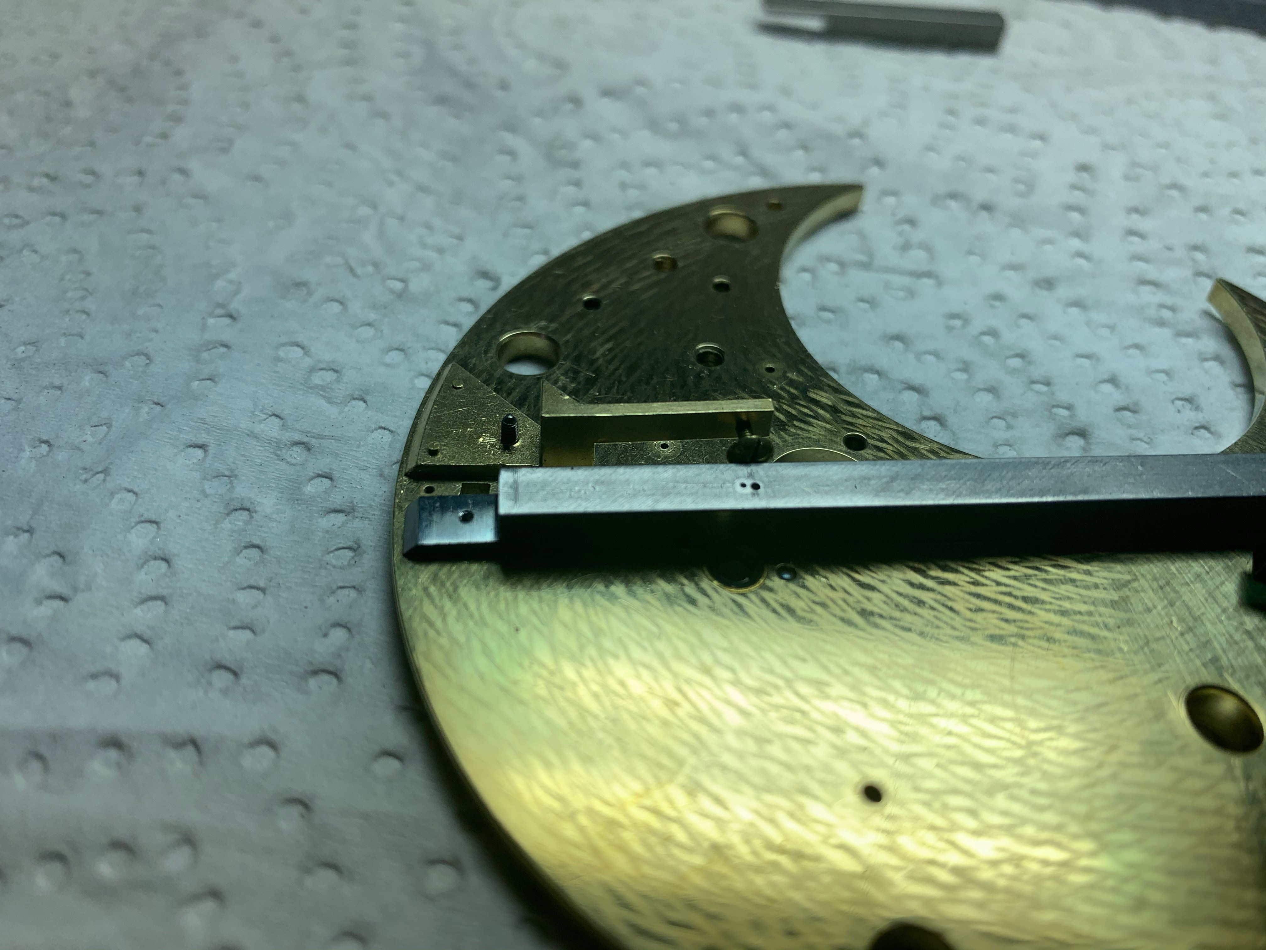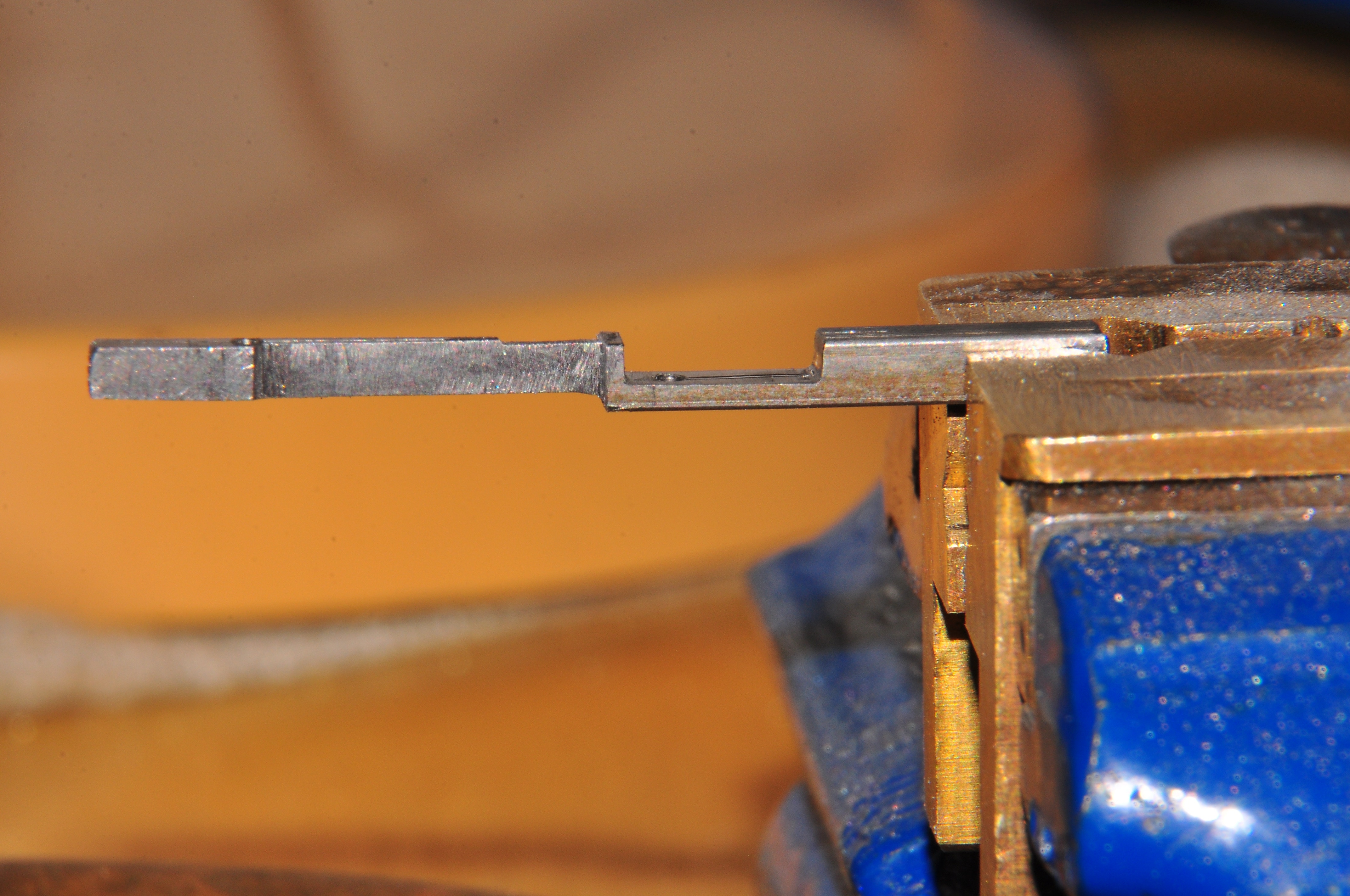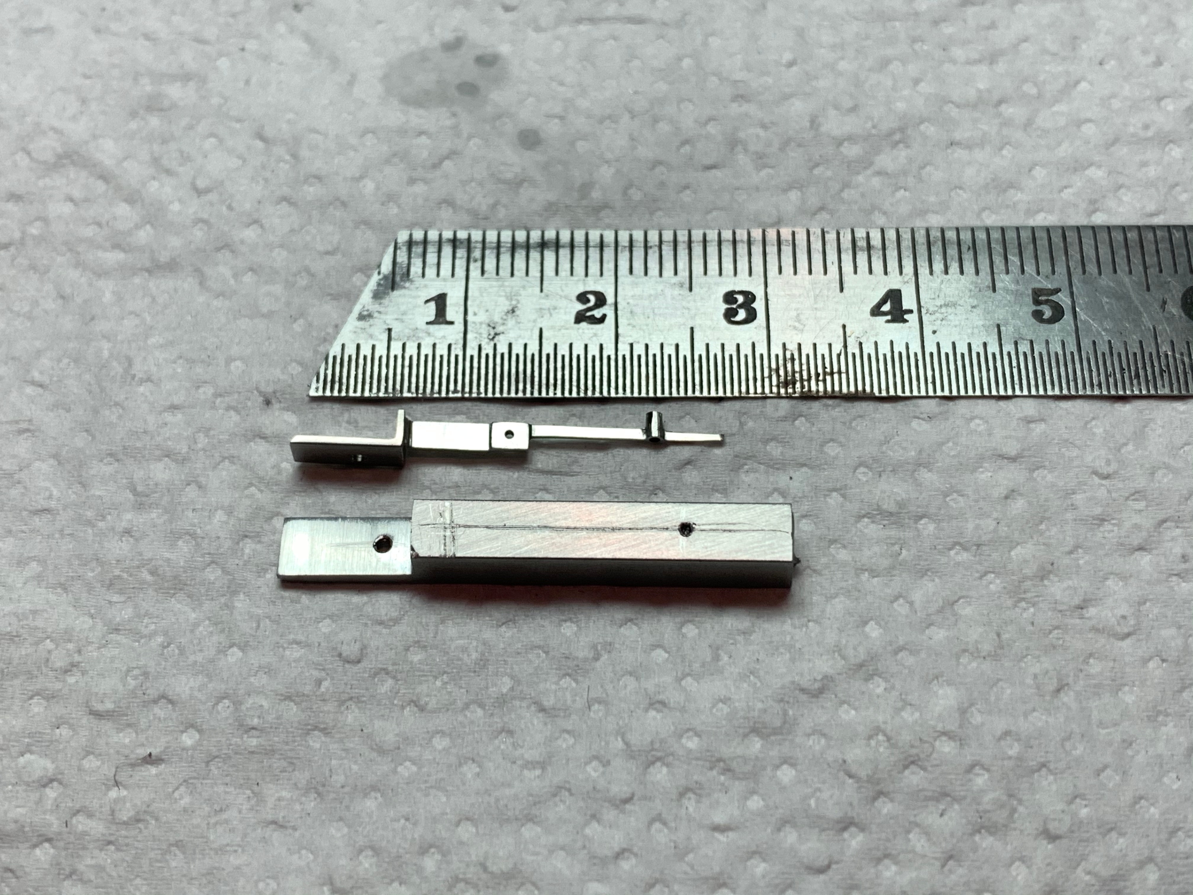 Hier ein paar Bilder wie eine Gangfeder (das Herzstück eines Chronometer) entsteht. Die Gangfeder wird aus massiven vierkant Stahl gefertigt und danach gehärtet. Dann kommt der schwierige Teil, die Gangfeder auf die richtige Dicke von nur wenigen hundertstel Millimetern zu schleifen. Dabei darf die Feder aber auch nicht zu dünn werden, da sonst das gefürchtete Chronometerflatten auftritt.